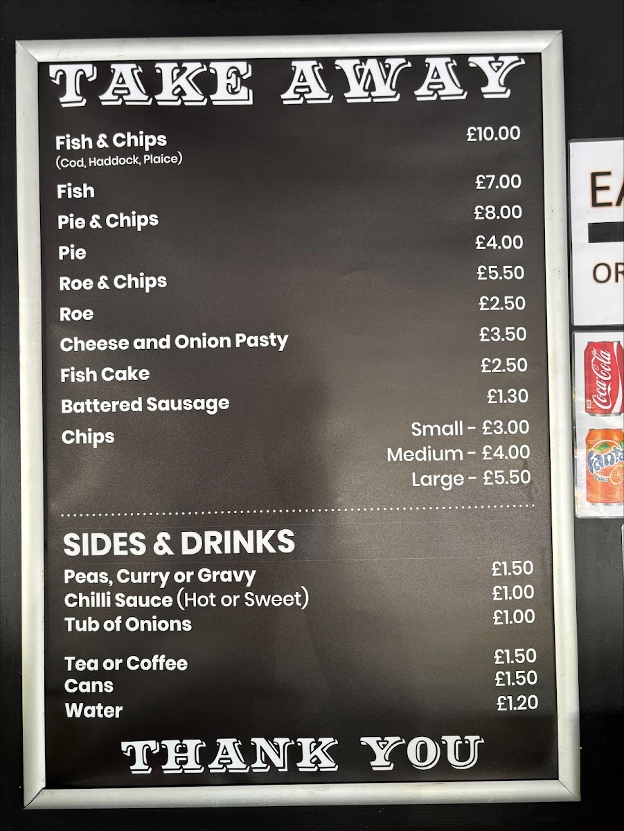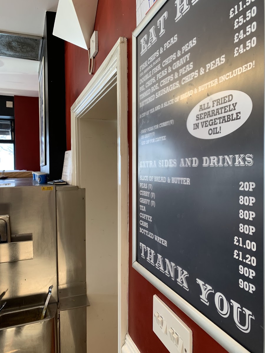 Welcome to Bedders, where every bite takes you on a delicious journey! Nestled at 898 Coventry Rd, Birmingham B10 0UA, our menu offers a mouthwatering selection of classic favorites that are sure to satisfy your cravings. Dive into our signature Fish and Chips with Mushy Peas or savor the comforting taste of a classic Cod and Chips. If you're in the mood for something different, our Fish Sandwich and Rip-Off Fish N Chips are a must-try! Pair your meal with a refreshing cup of Tea or indulge in our Fish & Chills for an unforgettable experience. Don’t forget to explore our tantalizing options like Battered Cod Fish and Chips with Mushy Peas and Curry Sauce on Chips. Whether you're after a quick lunch or a hearty dinner, Bedders Menu has something for everyone. Come visit us and make your tastebuds dance!